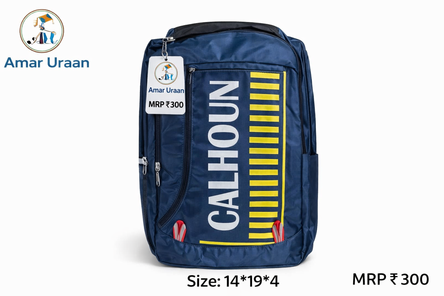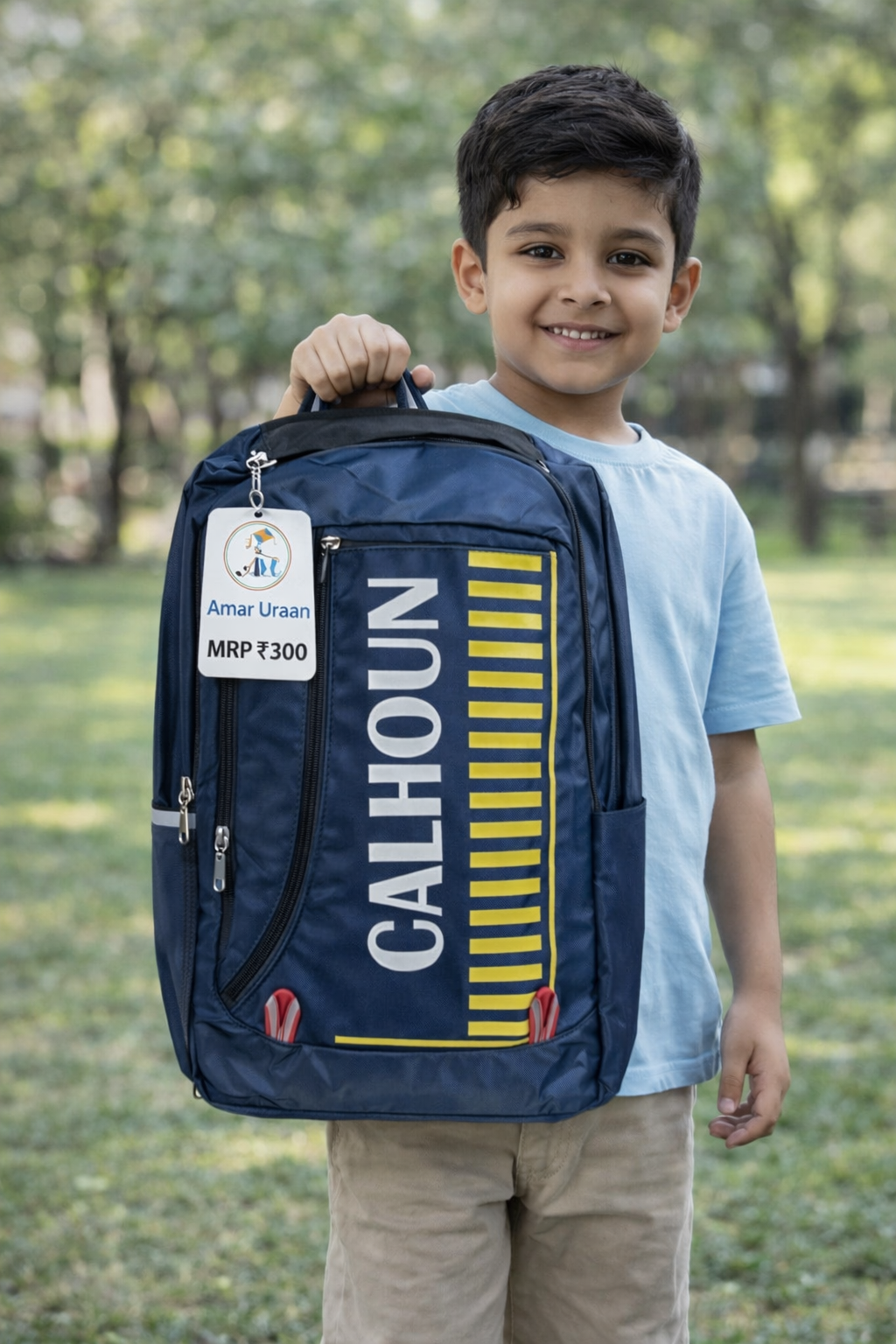 Amar Uraan Calhoun School Backpack 🎒 The Amar Uraan Calhoun backpack is designed for kids who need space, strength, and style. Made from durable material, this backpack features a modern sporty design with bold graphics. It offers spacious compartments for books, notebooks, and daily essentials, along with smooth zippers and a comfortable grip handle.